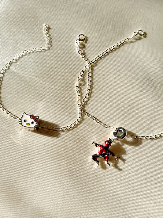 925 Sterling Silver Hello Kitty - Spiderman Bracelets