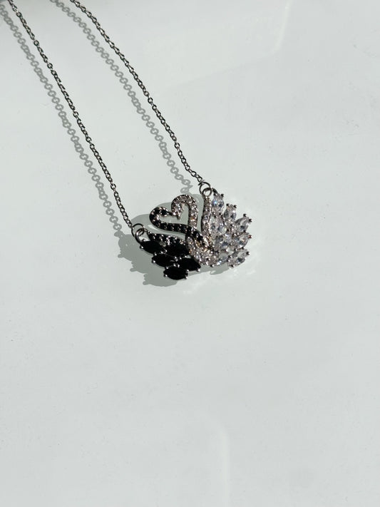 Stainless Steel Black & White Love Swan Necklace