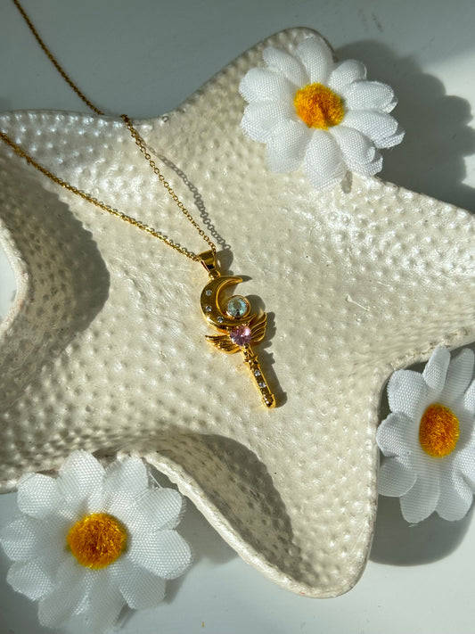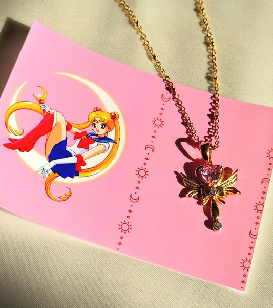 Sailor Moon Inspired Loving Wand Crystal Luna Necklace