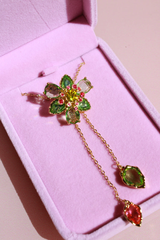 Adjustable Lily Flower Necklace With Green Zircon Stone – 14K Gold Plated- Idilia Inspired Necklace