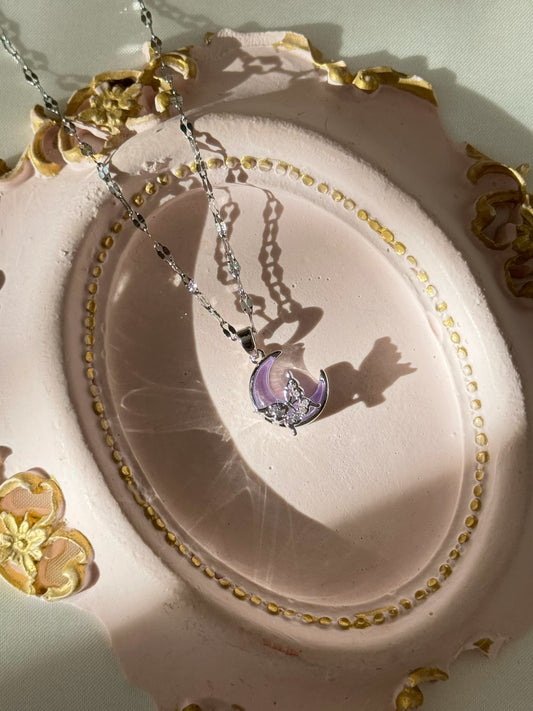 Collier papillon lune en acier inoxydable