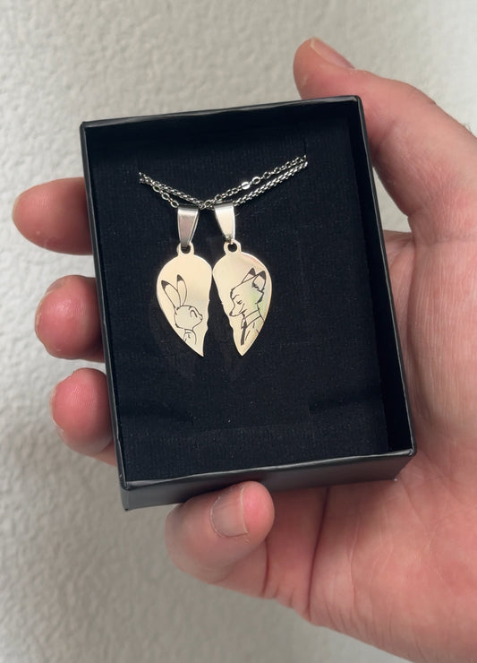 Zootopia Inspired Fox & Bunny Couple Half Heart Necklaces