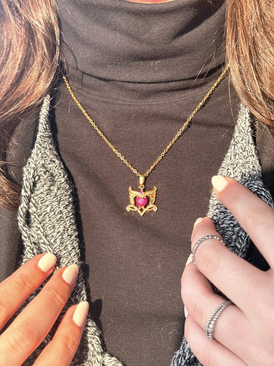 Sailor Moon Inspired Winged Crystal Neo Queen Heart Necklace