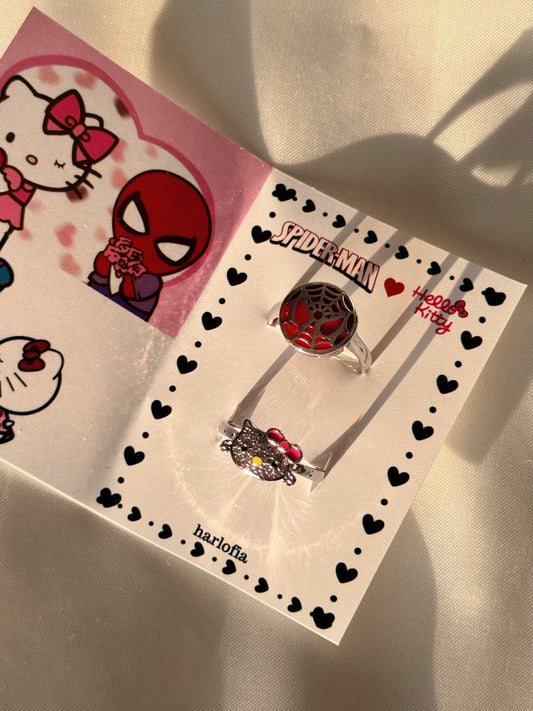 Ensemble de bagues pour couple Hello Kitty et Spiderman de Stony