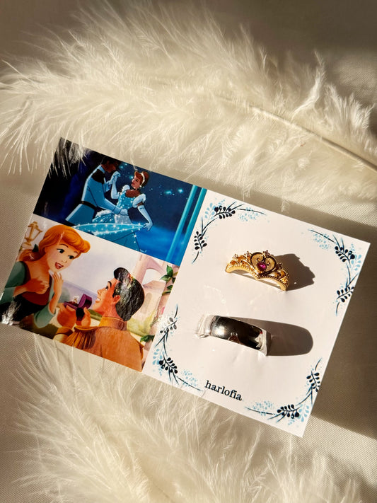 Bagues de couple Cendrillon et Prince Charmant plaquées 24 carats
